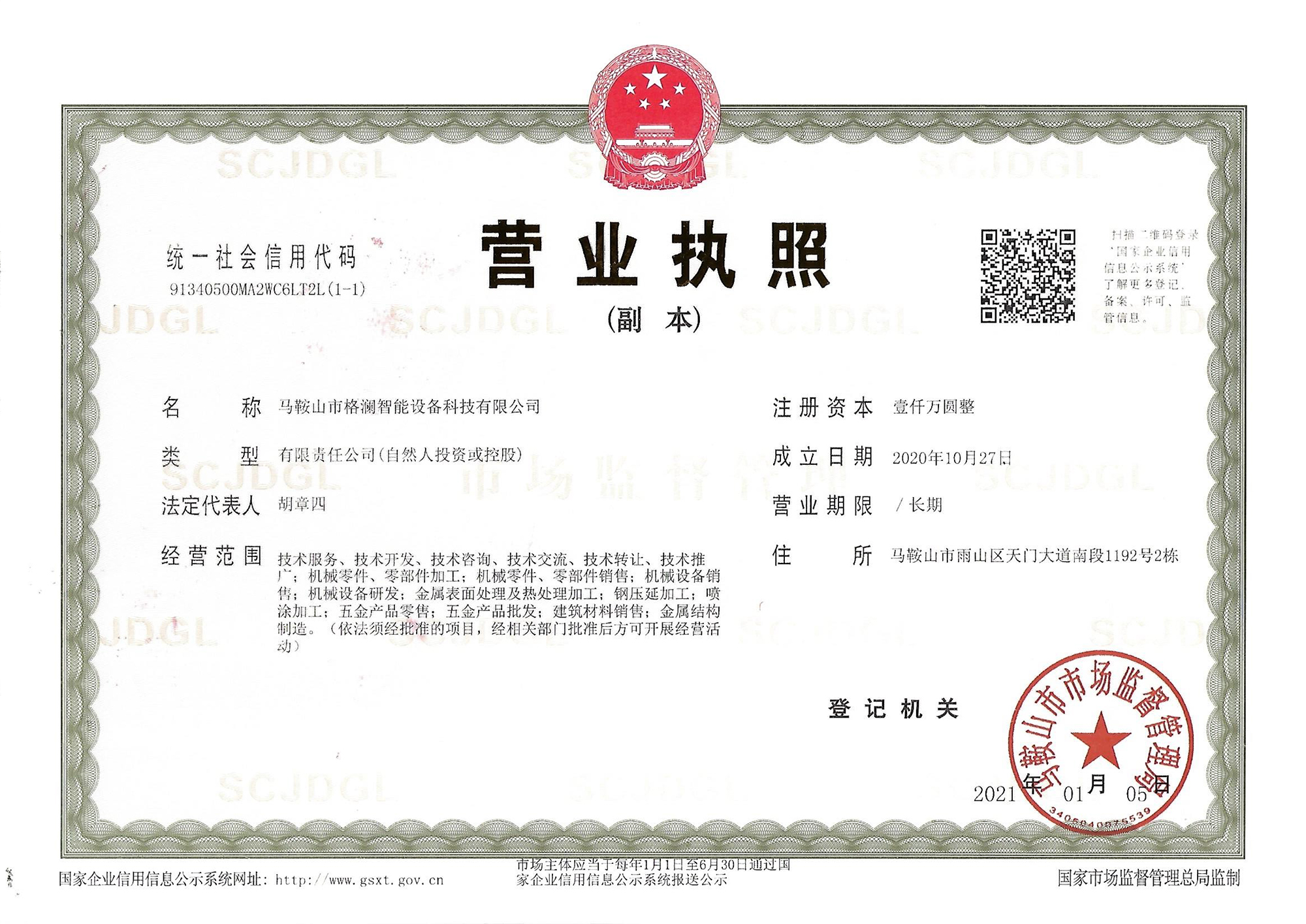 - 馬鞍山市格瀾智能設(shè)備科技有限公司位于皖江經(jīng)濟(jì)帶的鋼城馬鞍山市,公司距馬鞍山高速出口1公里。具有臨江近海,緊靠經(jīng)濟(jì)發(fā)達(dá)的長(zhǎng)江三角洲的地理位置。 公司秉持長(zhǎng)三角一體...